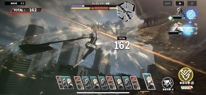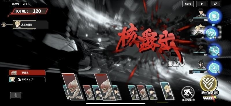 核露出が起きるとペアを組んでいるキャラクターが追撃を与えて追加で大きなダメージを与えられるので、素早さが高く敵の行動前に先に何度か動けるキャラクターで核露出を起こし、火力は高いものの行動順が少なくなりがちなパワータイプのキャラクターで追撃を与えるといった運用ができそうな印象もありました。