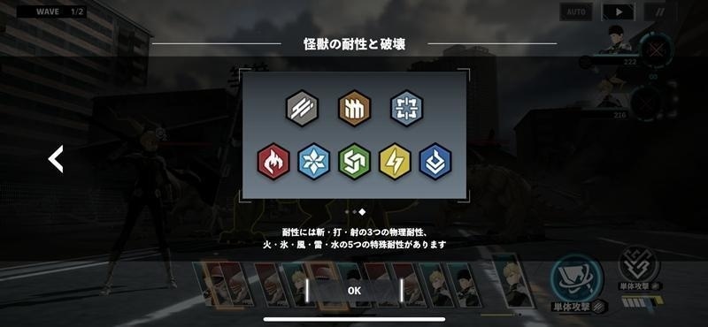 この核露出に重要なキャラクターごとの属性については、キャラクターによって変わってくるのだとか。作中には斬、打、射の3つの物理属性、火、氷、風、雷、水の5つの特殊耐性が存在しており、キャラクターたちはこの中からひとつ以上の属性を所持しています。