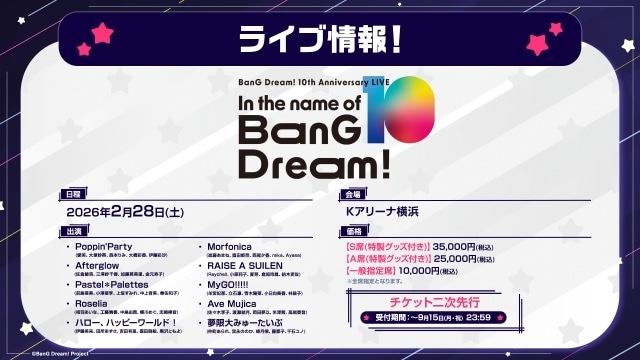 BanG Dream! 10th Anniversary LIVE 二次先行受付中
