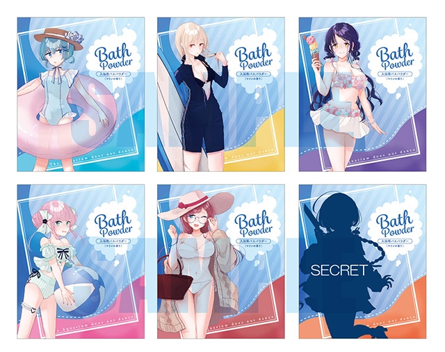 バスパウダーは、水着姿のスーズ・レトロ・ルル・キティ・クリス・シークレットの全6種。シークレットは、ヤドカリの声優を担当したあの人…?