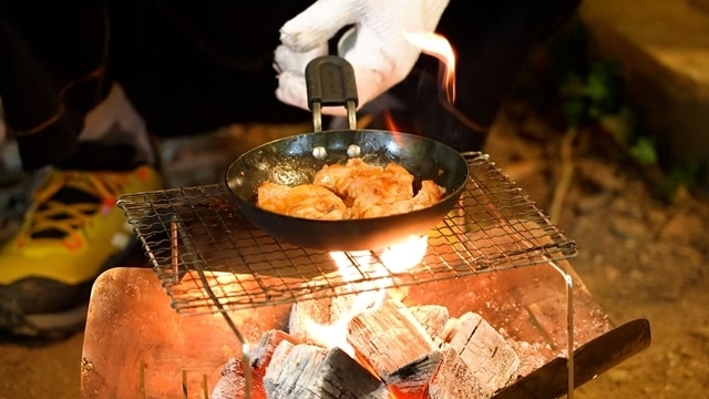 アニメ本編に登場する野菜巻き串やタンドリーチキンなどのキャンプ飯を、独自のポイントを交えて解説しながら作っていきます。