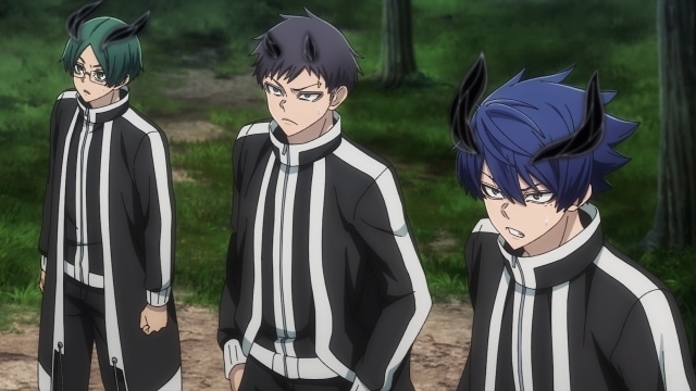 滅多に合格者を出さないと言われる教官の無陀野が7人も合格させており、粒ぞろいと言われる生徒たち。そのうちのひとり、一ノ瀬四季が教室に入ると、すでに他の生徒は着席していました。そんな中「話しかけるな」とつんけんする皇后崎迅。迅がツノを出したままにしている四季のことを馬鹿にすると、同じくツノを出したままだった碇もその喧嘩を買おうとし、入学早々ひと揉め起きそうな気配に。