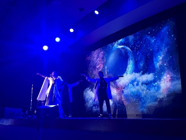 そんな愛の詰まった観客から大きな拍手と歓声で迎えられ既に熱気が高まるなか、最初に披露されたのは、1997 年公開の映画『新世紀エヴァンゲリオン劇場版 シ新生』の主題歌であり、『エヴァンゲリオン』シリーズを代表する楽曲の一つ「魂のルフラン」。クラシカルな黒の衣装で登場した高橋洋子は、キャッチーな旋律にのせて伸びやかな歌声を響かせ、会場の観客も一緒に大合唱!一気に『エヴァンゲリオン』の世界へと誘う。そして、楽団は、謎に満ちた敵・使徒の襲来時に流れるスリリングなメロディの「ANGEL ATTACK」や、エヴァンゲリオン初号機を紹介する重要なテーマ「EVA-01」の生演奏を立て続けに披露。