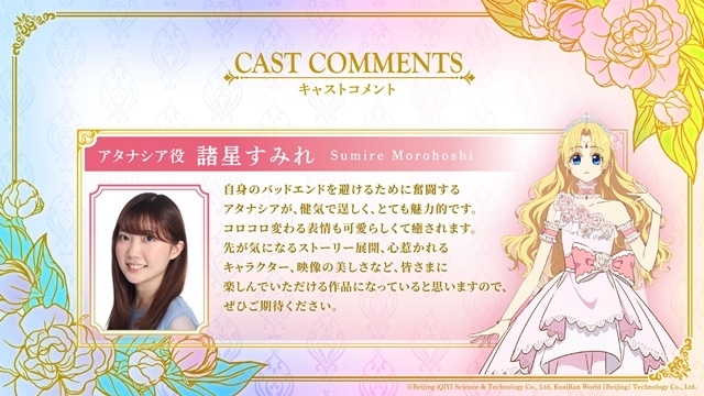 自身のバッドエンドを避けるために奮闘するアタナシアが、健気で逞しく、とても魅力的です。コロコロ変わる表情も可愛らしくて癒されます。