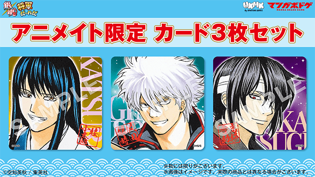 本商品をアニメイトでご購入いただくと、坂田銀時&桂小太郎&高杉晋助の限定カードが付いてきます! アニメイト通販にて予約受付中なので、ぜひチェックしてください♪