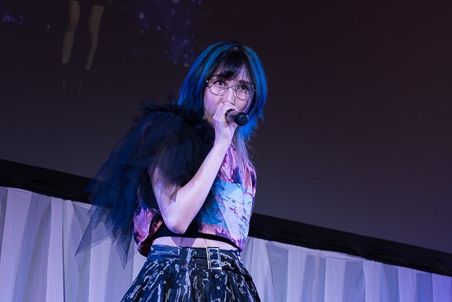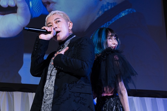 本作のオープニング主題歌と前期エンディングテーマを歌うASHとMindaRynの2組のアーティストが登場し、本作のオープニング主題歌およびエンディングテーマを生歌唱で披露しました。さらに、後期エンディングテーマとして、ASHとMindaRynがタッグを組んだ新曲「共鳴レボリューション」が発表され、生歌唱にて初披露&音源解禁!