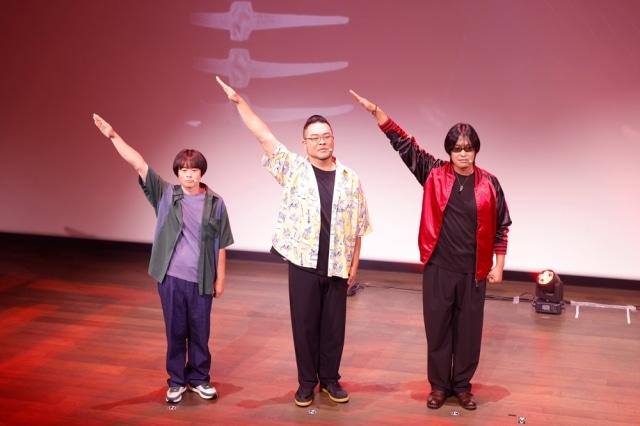 ステージには主人公・東島丹三郎役の小西克幸さん、そしてシークレットゲストとして伊藤さとし役の鶴岡聡さん、石毛ふくし役の落合福嗣さん、佐藤だいすけ役の阪口大助さんが出演。さらに、当日披露された映像内にて中尾八郎役の津田健次郎さんもサプライズ登場し、ステージを盛り上げました。
