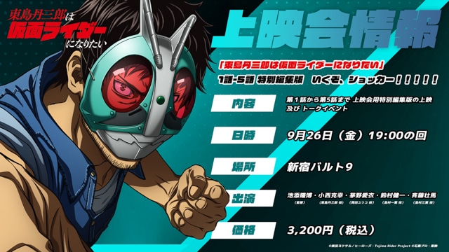 さらに、最新情報として9月26日(金)には、先行上映会【「東島丹三郎は仮面ライダーになりたい」1話-5話 特別編集版 いくぞ、ショッカー!!!!! 】の開催も決定し、小西さんの登壇も発表されました。