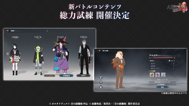 4人編成でのバトルを繰り返し、より上位の強敵と戦える総力試練の実装が決定いたしました。一度負けてしまっても、出撃していないキャラクターで再度4人編成を組み、挑戦することが可能です。また、各バトルを進めていくと報酬や経験値などを獲得する事が出来ます。