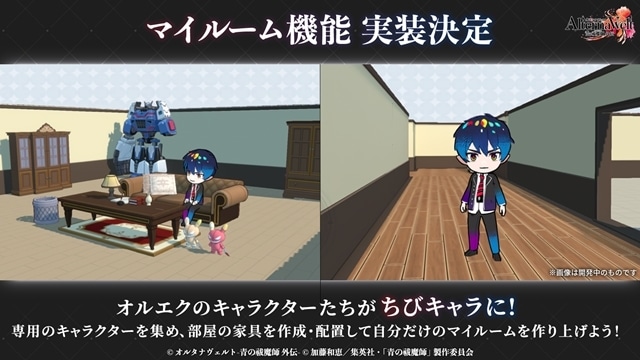 オルエクのキャラクターたちが「ちびキャラ」となって生活する様子を見られる新コンテンツ、「マイルーム」の実装が決定しました。ちびキャラたちを集め、部屋の家具を作成/配置して、自分だけのマイルームを作ることができます。