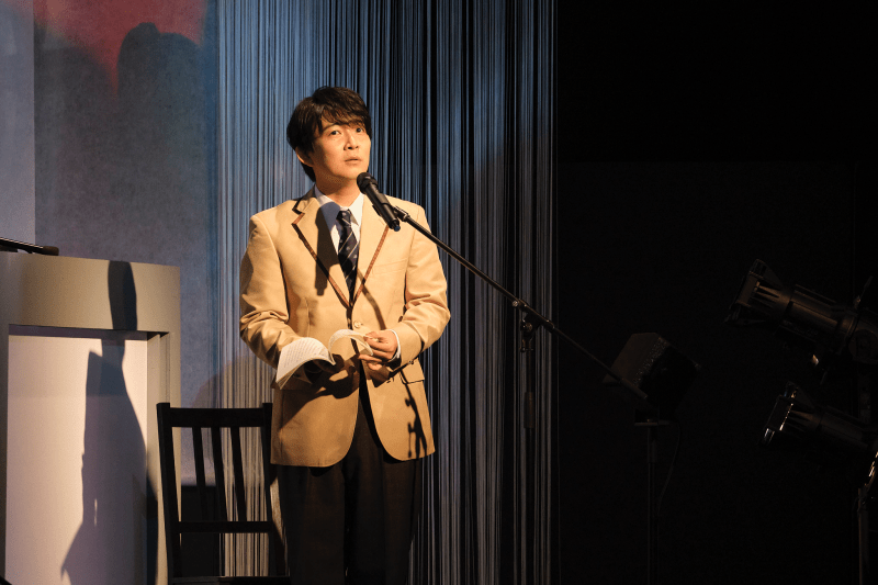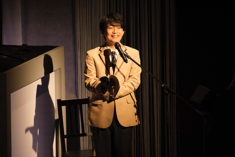 島崎が即座に冷静かつ的確なツッコミを入れる――このやり取りが、朗読劇でありながらもまるで本物の漫才コンビのようなテンポ感と絶妙な“間”で展開され、観客をたびたび笑いに包んだ。