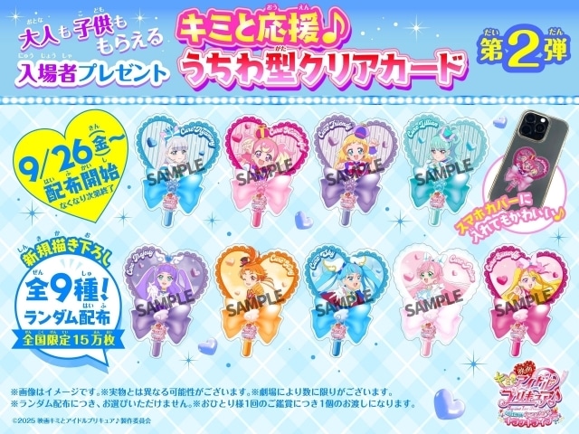 さらに、9月19日(金)からは入場者プレゼントとして「キミと応援♪うちわ型クリアカード」を配布決定! そして、第2弾プレゼントとして9月26日(金)からは新規描き下ろしデザインのうちわ型クリアカードが配布されます(全国限定15万枚)。