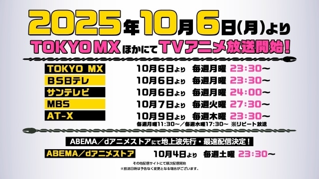 TOKYO MX・BS日テレ / 2025年10月6日 毎週月曜日23:30〜