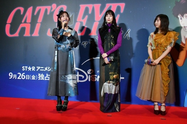 そして、本作でOPEDテーマを担当しているAdoからこの日のためのメッセージが到着!「「MAGIC」は、可憐でどこか懐かしいサウンドと共に踊りだしたくなるようなダンスナンバーとなっています。歌詞では三姉妹のような可憐な言葉が使われていたり、これまでの私にはなかった歌い方など魅力が沢山込められています。そしてエンディングは「CAT'S EYE」をカバーさせていただきまして、杏里さんをリスペクトしながら、この令和にまた生まれ変わったこの「CAT'S EYE」を楽しんでいただけたら嬉しいなと思っております」と、オープニングテーマ『MAGIC』とエンディングテーマ『CAT’S EYE』への想いが伝わるコメントを受け、佐藤は「令和の『キャッツ❤︎アイ』をおくり出すチームの一員としてメッセージをいただけて嬉しいです。これから(先行上映会で)Adoさんの楽曲がアニメーションとともに流れる気持ちよさを皆さんに楽しんでいただきたいです」と話し、ゆめっちも「Adoさんらしさと『キャッツ・アイ』らしさが入り混じっていて、マジで聞いてよかったと思いました。OPEDも最高です!」と興奮気味に語りました。