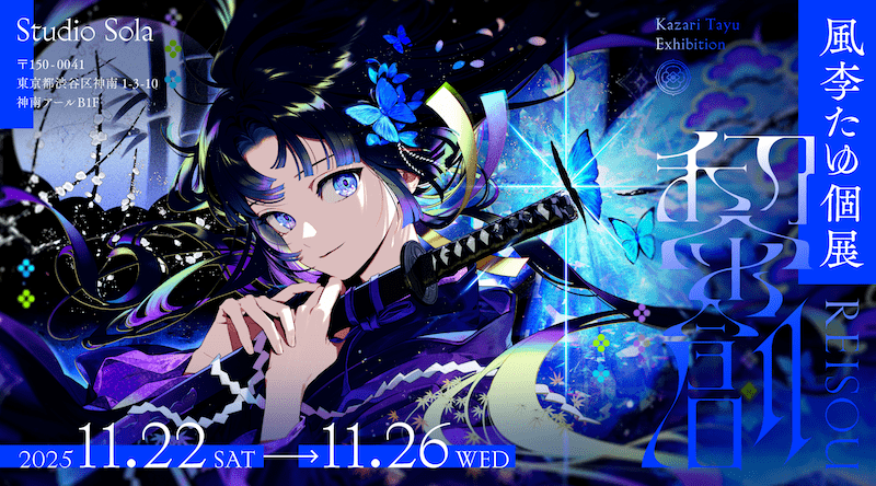 イラストレーター・風李たゆさんの初個展『黎創』が2025年11月22日(土)より渋谷・神南「Studio Sola」にて開催決定!