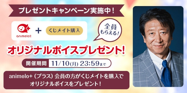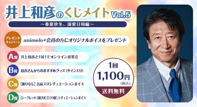くじメイトご注文時に【キャンペーン欄へニコニコID】をご記入いただきましたanimelo+会員様へ井上和彦さんからのオリジナルボイスを1種プレゼント!