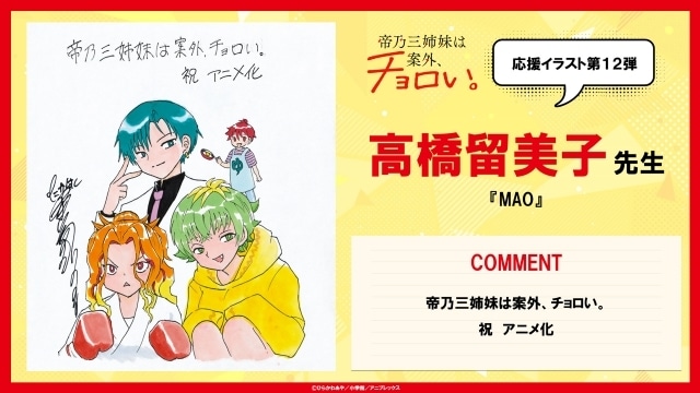 アニメ『帝乃三姉妹は案外、チョロい。』応援イラスト第12弾となる『MAO』の高橋留美子先生のイラストが到着! 第12話先行場面カット・あらすじも公開