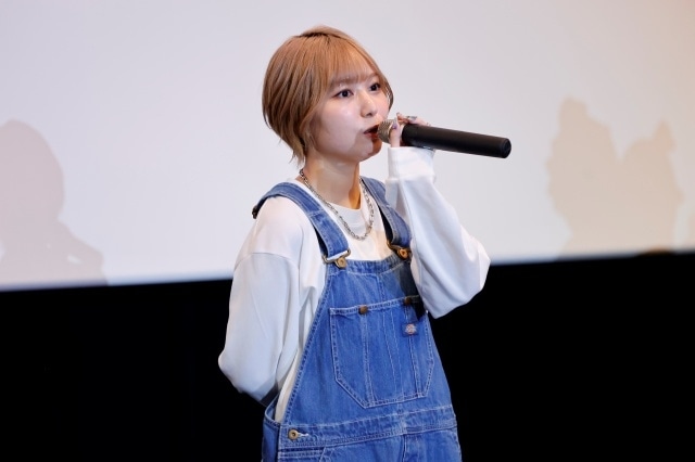 上映後にはヨーコを演じる稲垣好、そしてヨーコとともに旅するアイリを演じる富田美憂が登壇。本編の感想を問いかけると、観客からは大きな拍手が送られた。さらにステージには、旅の相棒として3人目の主人公ともいえる、セローも描かれた、描き下ろしの等身大のキャラスタンディパネルも登場。稲垣からは「バイクの汚れの表現だったり、すごくバイクにこだわっています!」と、富田からは「バイクに対してこのアイリの小ささ!かわいいですよね!」と紹介された。なお観客の中には、実際にセローで会場まで訪れた人も多くいたようだ。