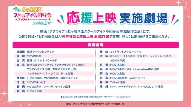 映画『ラブライブ!虹ヶ咲学園スクールアイドル同好会 完結編 第2章』にて、発声可能な応援上映の実施が決定しました!