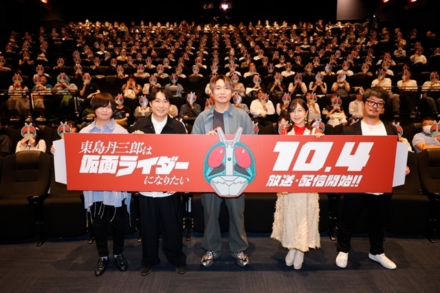 2025年9月26日(金)新宿バルト9にて「『東島丹三郎は仮面ライダーになりたい』1話-5話 特別編集版 いくぞ、ショッカー!!!!!」が開催。小西克幸さんはじめとするメインキャスト陣が登壇し、会場は大いに盛り上がりました。第一話のスペシャルゲスト等の新情報も公開されています。