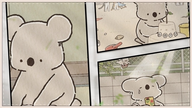 洗濯物を畳んだり、届いている封筒を確認したり、お茶を飲んでこぼしてしまったり、コアラさんの穏やかな日常がふんだんに詰め込まれています。内田彩が演じるコアラさんのボイスも初公開となっており、原作ではほとんど台詞がないコアラさんの感情が見事な息遣いで表現されている部分に注目です。