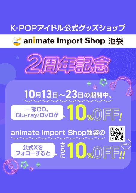 店内の一部商品を10%OFFで販売いたします。「animate Import Shop 池袋」のXアカウントをフォローし、レジでフォロー画面をご提示いただいた方はさらに10%OFFになります!