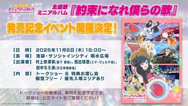 映画『ラブライブ!虹ヶ咲学園スクールアイドル同好会 完結編 第2章』主題歌ミニアルバム「約束になれ僕らの歌」(11月8日(土)発売)の発売記念イベントが開催決定!