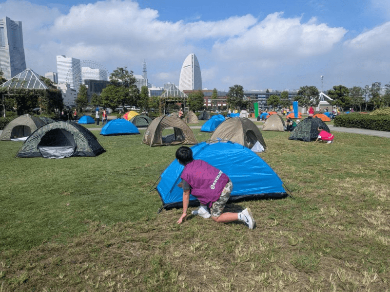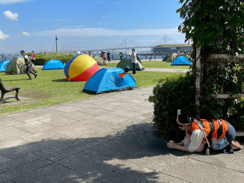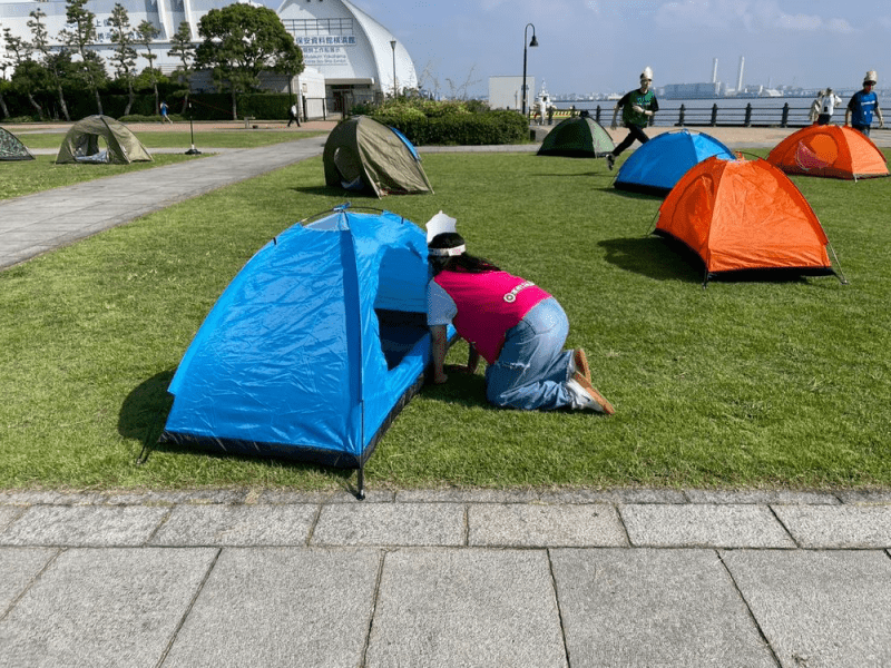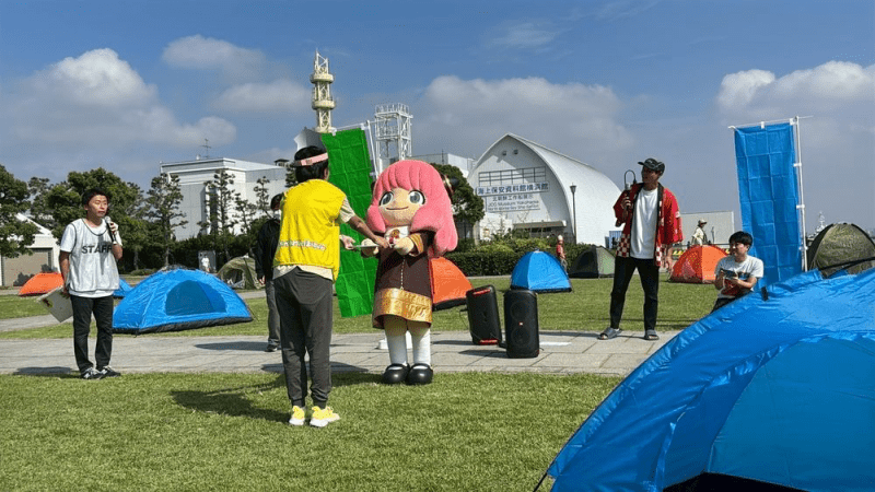その様子はまさにスパイさながら。設置されたテントの裏に身を潜め、鬼の動向を伺いながら、緊迫感とワクワクが入り混じるかくれんぼを満喫しました。配布されたアーニャのお面をつけた参加者は、子供から大人まで、年齢の垣根を越えて夢中になって楽しむ姿が見られました。