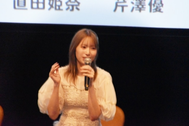 会沢紗弥さんは、「現代人の皆さんは身体がつかれていると思うんですよ。そんなあなたでも、このアニメを15分見るだけで、身体が軽くなる」と、会場の笑いを誘いつつ「マッサージに関しても本格的なアニメなので、引き続き楽しんでいただきたいなと思っています」と、本作のマッサージシーンについて語っていただきました。