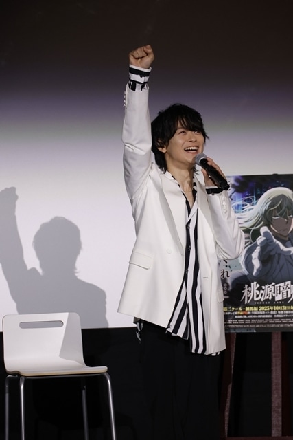 そして本イベントはエンディングへ。土岐さんが「練馬を舞台に、桃太郎側・鬼側のいろいろな思いが交錯しながらストーリーが進んでいきます。毎週絶対に観るぞ!というのを自分ルールとして、ここから数ヶ月楽しんでいただきたいです」、浦さんが「TVで放送されるタイミングでもちゃんと観ていただいて、SNSで実況をしてほしい! 『#桃源暗鬼』を付けながら一緒に盛り上げてもらえたら嬉しいです」と観客へメッセージを送ります。