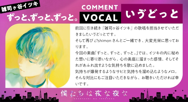 ボカロP×歌い手×声優『僕たちは夜な夜な』より、新曲「ずっと、ずっと、ずっと。」のMVが公開!! ¿?さん・いゔどっとさんたちからコメントも到着!