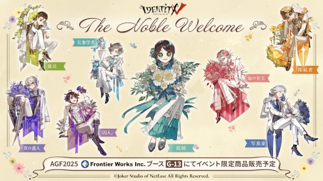 株式会社フロンティアワークス(本社:東京都板橋区 代表:辻󠄀 政英 以下:「フロンティアワークス」)は、2025年11月8日(土)~11月9日(日) に池袋・サンシャインシティで開催される、アニメ・コミック・声優・グッズ・乙女ゲーム・コスプレなど“乙女のためのすべて”が集まる大型イベント「アニメイトガールズフェスティバル2025」(以下:「AGF2025」)に出展、同社ブースにて、非対称対戦型マルチプレイゲーム『Identity V 第五人格』の新商品を販売いたします!