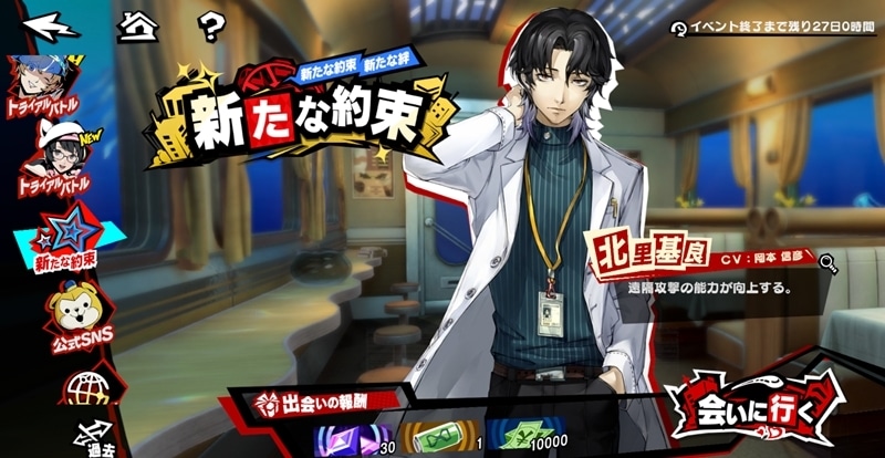 今ゲームを始めると、契約で使用可能な「自在結晶」や「プラチナチケット」など、北里をゲットするために必要なアイテムがログインボーナスなどで手に入ります。「自在結晶」はゲームを進めることでも入手できるので、この機会にぜひ『P5X』の物語をご体験ください。