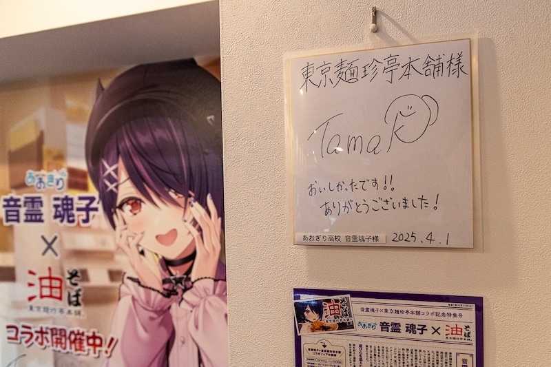アニメイトタイムズでは本コラボを記念して実食レポートを実施。コラボメニューの実食はもちろん、「音霊魂子」一色に染まった東京麺珍亭本舗 鶴巻町本店の模様をお届けします。