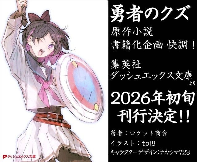 ロケット商会氏による原作小説が、新装版で刊行決定! ナカシマ723氏のキャラクターデザインを元に、新たにイラストレーターにtoi8氏を迎え、集英社ダッシュエックス文庫より2026年初旬刊行予定。今回は最新描き下ろしイラストを公開。続報をお楽しみに!