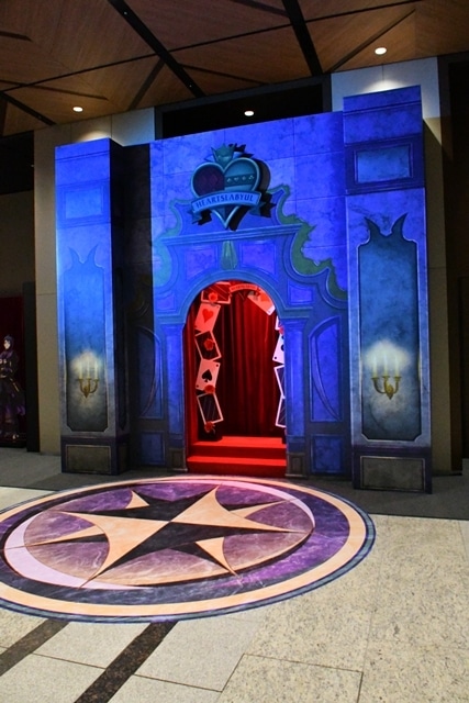 会場に足を踏み入れると、ディズニーアニメーション映画『ふしぎの国のアリス』からインスパイアされた<ハーツラビュル寮>へと繋がる作中に登場する鏡舎をイメージしたユニークなデザインのゲートが目の前に!