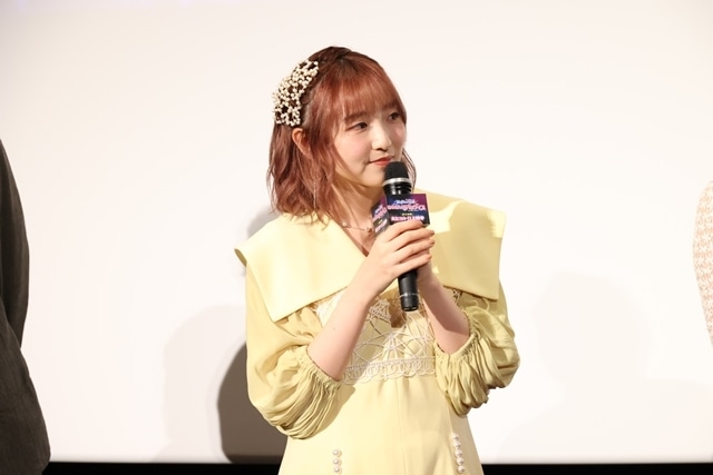 河瀬「7年前アニメの第1期の1話が始まった時や自分がオーディションを受けた時から考えたら まさかこうやって劇場版の舞台挨拶ができてるなんてその時は思ってもみなかったなと思います。そんな未来をくれたのは本当に皆様のおかげだと思っております 。まだまだ見に行きたい未来がございます!ぜひこれからもたくさん応援していただけたら私たちもいろんな未来をみんなと一緒に見に行けるんじゃないかなと思っております。これからもよろしくお願いします!