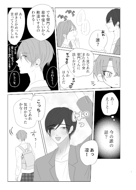 御門が知らない女性と話しているっ!! さらに追い打ちをかけるようにモブたちのうわさ話も耳に入ってきて、確信があった御門からの「好き」の気持ちに不安が募っていきます。