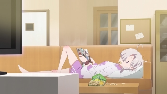 リビングのソファでゴロゴロと雑誌を読んでいる月菜。テレビでは、おいしそうなうどんの映像が流れている。「うどん県民の血液」というコメンテーターの言葉を聞いた月菜。「これだ……!」と思い、起き上がるのだった。