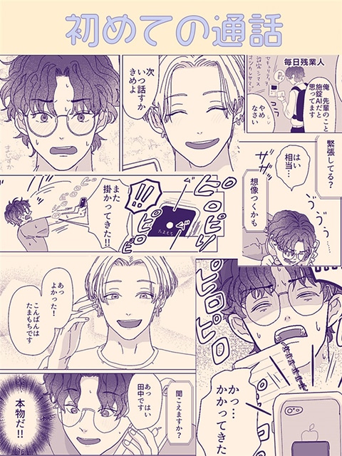 推し作家との通話に、さっそく緊張してしまう田中。推しとの会話なんて尊すぎて……動きの激しい田中の様子に頷きつつ笑ってしまいます♪