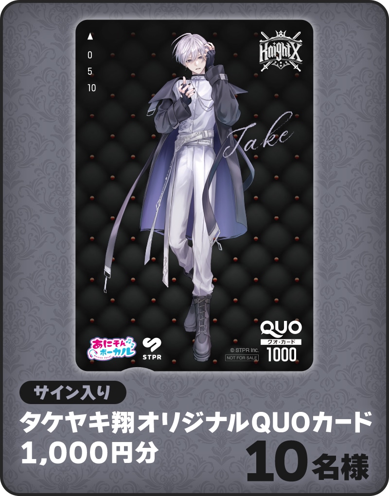 賞品:サイン入りタケヤキ翔オリジナルQUOカード(1,000円分)10名様