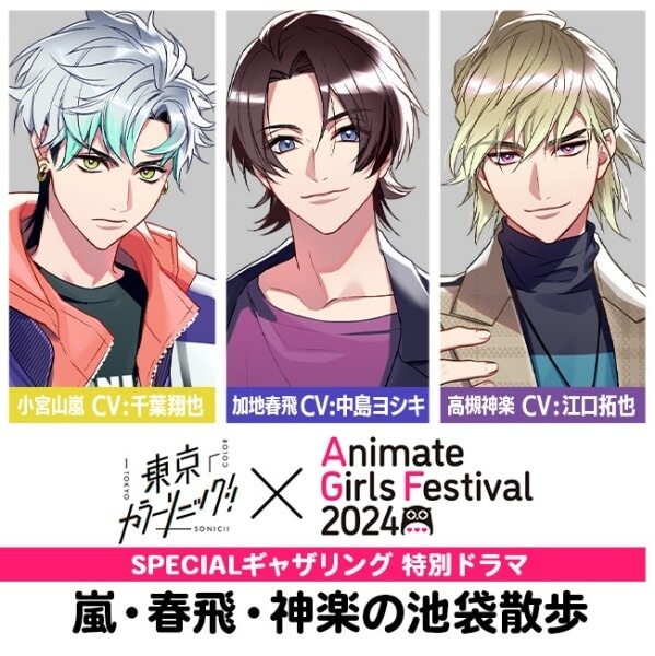 ▼『東京カラーソニック!!×AGF2024 SPECIALギャザリング』特別ドラマ 嵐・春飛・神楽の池袋散歩【出演声優:千葉翔也 中島ヨシキ 江口拓也】