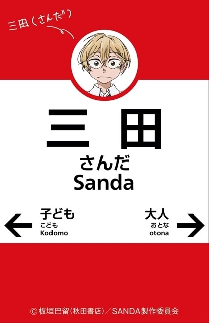 「三田」と叫び呟くキャラクターたち。それは駅名かと思いきや…実はアニメ「SANDA」の主人公、三田の名前。三田で三田と言われ続けるにつれ、いつしか「三田駅」を「さんだ駅」と読まずにはいられないかもしれません…!