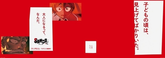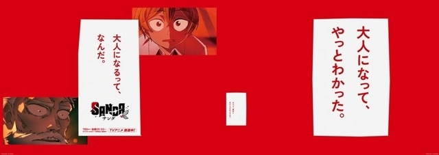 大人と子どもを行き来する主人公・三田になぞらえて、「大人になるって、なんだ。SANDA」をテーマに広告を展開。大人の目線から、「大人になることとは?」「大人になるって、わるくないかも」とじんわり考えさせられるコピーを各駅ごとに掲載しています。