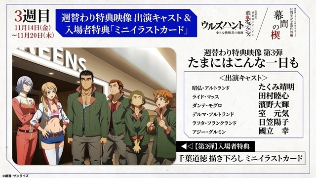3週目の「週替わり特典映像」には、鉄華団&タービンズのキャラクター達が集合! 第3弾の週替わり特典映像&入場者特典イラスト公開!
