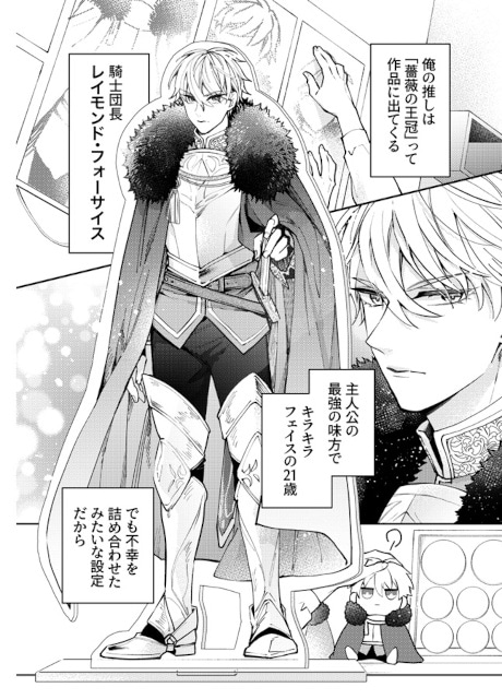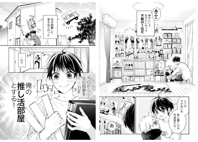 掛橋澄晴(スバル:上画像左)は、引っ越した兄の部屋を推し活部屋に改造中の強火オタクな男の子。小説作品『薔薇の王冠』に登場する騎士団長、レイモンド・フォーサイス(レイ:上画像右)が最推しです。