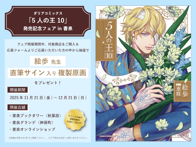 シリーズ累計75万部突破のBLコミックス『5人の王』(著:絵歩先生・原作:恵庭先生)第10巻が発売中!