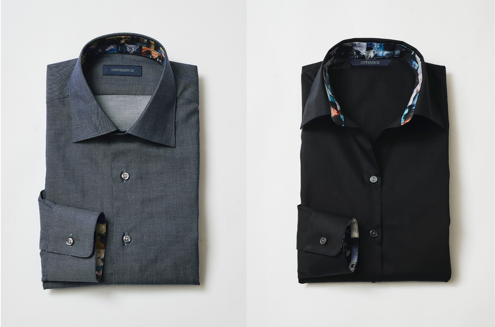 オーダーシャツもメンズ&レディースに対応。襟裏、袖裏にスーツと同じ3種類の限定裏地からお選びいただけます。