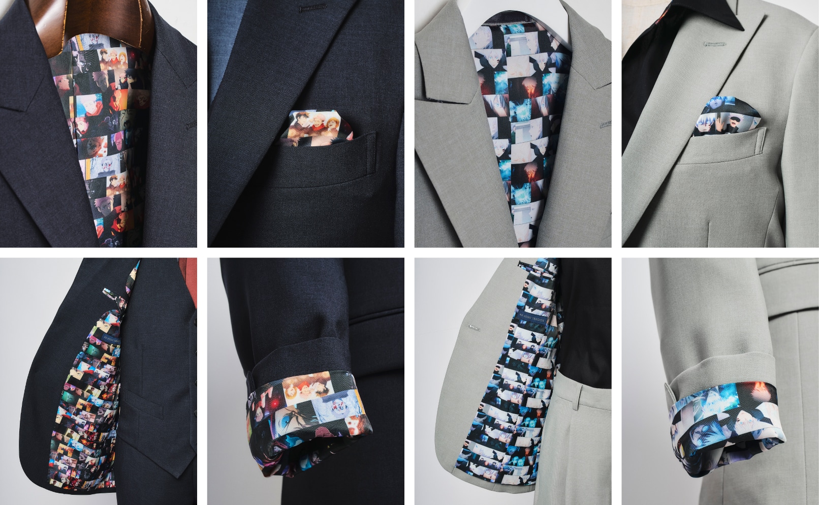 「虎杖悠仁」「七海建人」「五条悟」が登場するシーンを集めた裏地を要所に使用したオーダースーツと、オーダーシャツの受注を行っています。
