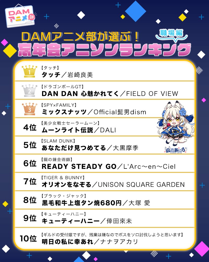 そこで今回は、DAMアニメ部員が選ぶ「忘年会アニソンランキング」を紹介!